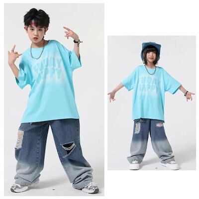 ダンスパンツ デニムパンツ キッズ デニム ワイドパンツ ピンク イエロー ブルー グリーン ダンスパンツ 女の子 男の子 舞台 団体服 演出服 ワイドパンツ ジーンズ ジャズダンス 運動会応援団 | koookooo