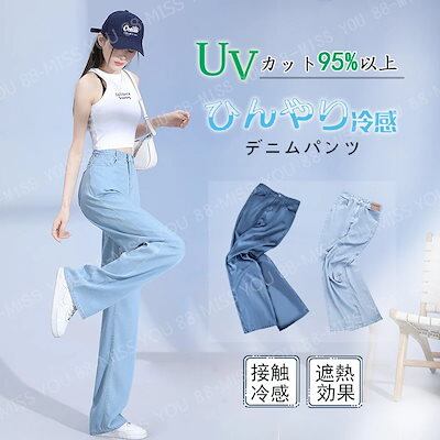 24新作 シンプル デニムパンツ uvカット ハイウエスト ワイドパンツ 接触冷感 ジーンズ レディース レトロ ゆったり ズボン デニムボトムス スキニーパンツ 大きめサイズ ひんやりボトムス586 | koookooo