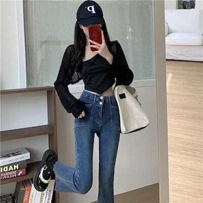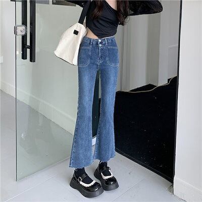 新作 デニムパンツ ワイドパンツ ロング丈 八分 九分 長ズボン ゆるい ハイウェスト 春秋 レディース 韓国風 通学 通勤 カジュアル 着まわし 人気 シンプル 50代40代30代20代 S/M/L | koookooo