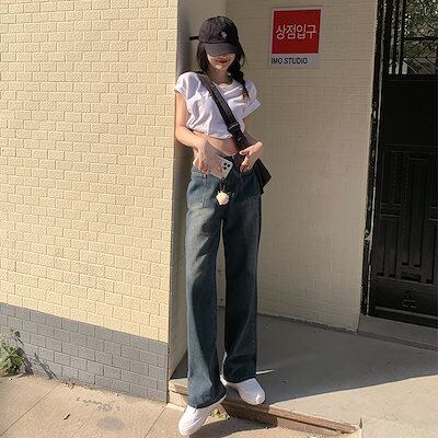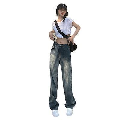 2025新型 アメリカ ゆったりワイドパンツ ハイウエストストレートスリム パンツ デニムボトムス ジーンズ ボトムス レディース 美脚 デニムパンツ