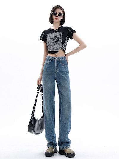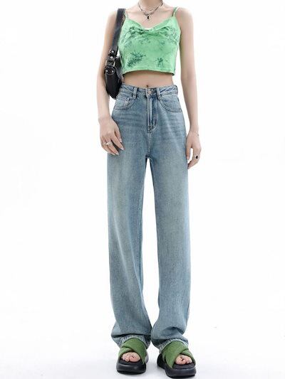 デニムボトムス ジーンズ ワイドパンツ レディースドレープ感 着痩せ ジーンズ ロングパンツ レディース服 デザイン感 ハイウェストゆったり 長ズボン ロングズボン ワイドパンツ | koookooo