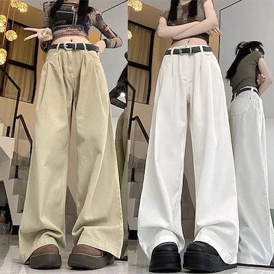 カーキ カラー カジュアル パンツ レディース デニム パンツ 新作 ハイウエスト 痩せ見え ゆったり ワイドレッグ ストレート ロングパンツ