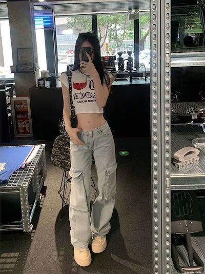 ライトブルー ワークウェア デニム アメリカン ストレート パンツ レディース メンズ ゆったり ハイウエスト 痩せ見え ワイドレッグ ロングパンツ 夏 秋