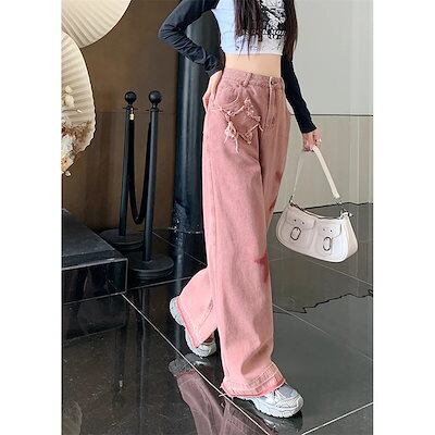 ワイドパンツ デニムズボン 韓国 メンズ レディース おしゃれ 脚長効果!スキニーデニムパンツ