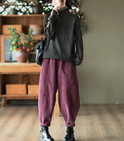 バルーンパンツ コーデュロイ レディース サルエルパンツ 裏起毛 秋冬 パンツ ウエストゴム 無地 コーデュロイパンツ ポケット付き ロングパンツ ゆったり ワイドパンツ ボトムス ズボン サーカスパ | koookooo