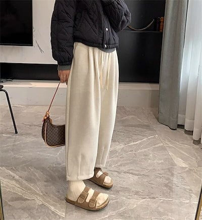裏起毛 ロングパンツ レディース 冬 カーブパンツ ワイドパンツ ロング丈 ワイド 九分丈 スウェットパンツ タック入り 低身長 ポケット付き ウエストゴム ロング ボトムス ズボン 長ズボン 無地 | koookooo