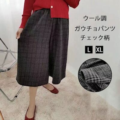 ガウチョパンツ スカーチョ 秋冬 レディース チェック柄 ワイドパンツ ウール調 キュロット パンツ 秋 冬 ボトムス 防寒 フレアパンツ チェックパンツ ワイド ふんわり ボリューム キュロットパン | koookooo