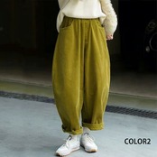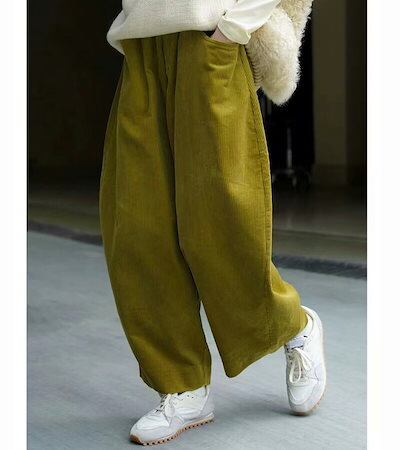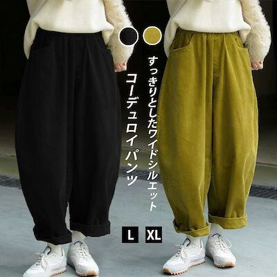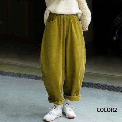 コーデュロイ パンツ レディース ワイドパンツ 秋冬 バルーンパンツ ウエストゴム 無地 コーデュロイパンツ ポケット付き ロングパンツ ゆったり ボトムス ズボン 体型カバー サーカスパンツ 美脚 | koookooo