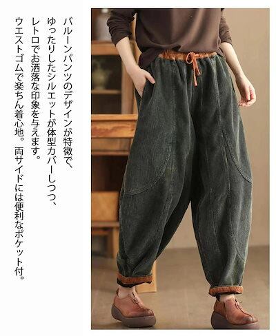 バルーンパンツ コーデュロイ レディース ワイドパンツ 秋冬 パンツ ウエストゴム 切替 コーデュロイパンツ ポケット ロングパンツ ゆったり ボトムス ズボン 体型カバー サーカスパン | koookooo