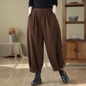 バルーンパンツ コーデュロイ レディース ワイドパンツ 秋冬 パンツ ウエストゴム 無地 タック コーデュロイパンツ ポケット付き ロングパンツ ゆったり ボトムス ズボン 美脚 楽ちん コクーンパン | koookooo