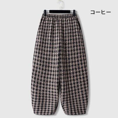 バルーンパンツ チェック柄 ワイドパンツ レディース 秋冬 パンツ チェックパンツ ウエストゴム ラシャ ストレートパンツ ポケット付き ロングパンツ コクーンパンツ ゆったり ボトムス ズボン 体型 | koookooo
