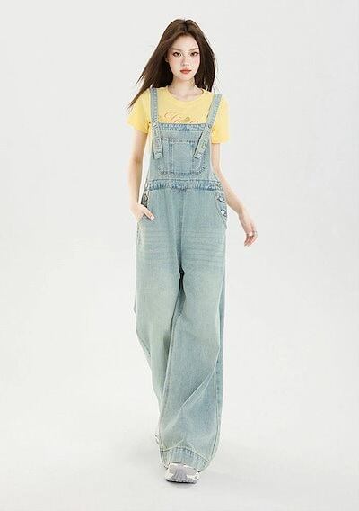 サロペット デニム レディース オーバーオール デニムサロペット ジーンズ ワイドパンツ ハイウエスト 春 夏 秋 冬 デニムパンツ デニムサロペ オールインワン 体型カバー 欧米風 アメカジ カジュ | koookooo