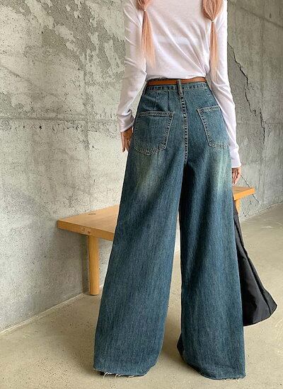 ジーンズ ワイドパンツ デニム デニムパンツ デニムスカーチョ レディース きれいめ 股上深め 大きいサイズ 春夏秋冬 フレアパンツ ゆったりシルエット おしゃれ ロングパンツ 無地 ボトムス 体型カ | koookooo