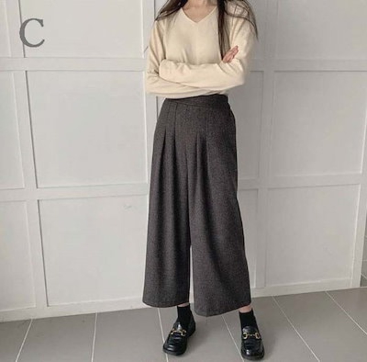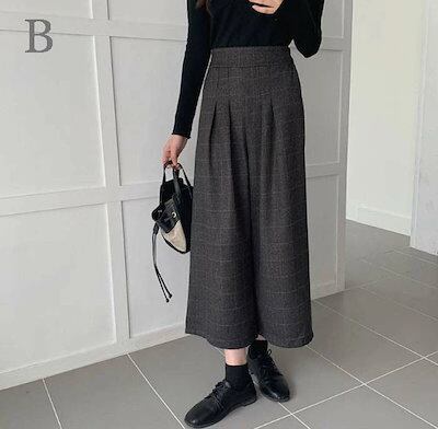 ガウチョパンツ ワイドパンツ スカンツ おしゃれ 秋冬 ロングパンツ 無地 チェック柄 レディース ボトムス 体型カバー ハイウエスト 着痩せ ロング丈 パンツ ゆったり 美脚 可愛い 上品 L 2L | koookooo