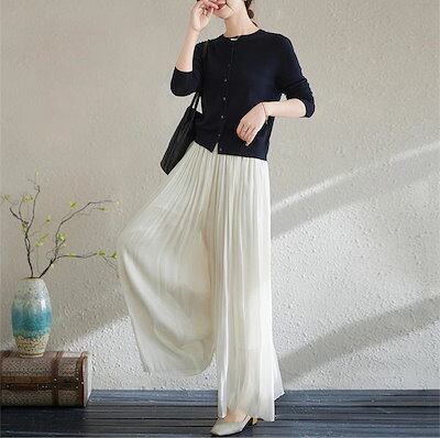 ワイドパンツ レディース 夏 冷感 春夏秋冬 ボトムス パンツ ウェストゴム 涼感素材 レディース長ズボン ガウチョパンツ ロング丈 ゴム 春夏 無地 体型カバー 脚長 ハイウエスト 薄手 ゆったり | koookooo