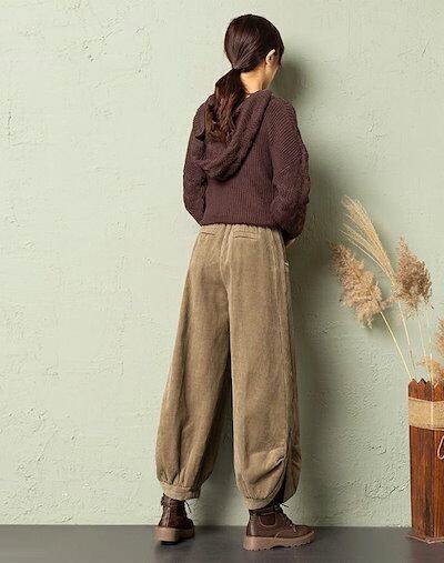バルーンパンツ 裏起毛 コーデュロイ ワイドパンツ ロング レディース 黒 大きいサイズ ワイド ボトムス 秋 秋物 秋冬 シンプル きれいめ ブラック カジュアル 暖かい あったか ロングパンツ マ | koookooo