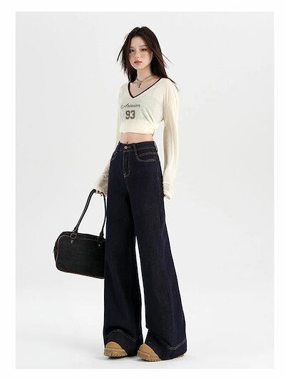 パンツ ボトムス デニム レディース ワイドパンツ ハイウエスト ジーンズ 股上深め ジーパン ストレート ゆったり すっきり 体系カバー 美脚 華奢見え 着痩せ 脚長効果秋 春 冬 大きいサイズ 小 | koookooo