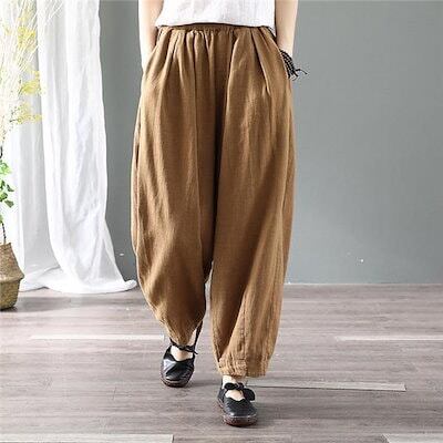 大人の魅力 ガウチョパンツ ワイドパンツ レディース ウエストゴム 春 夏 ロング丈 フレア パンツ ガウチョ 麻混 ボトムス カジュアル ナチュラル