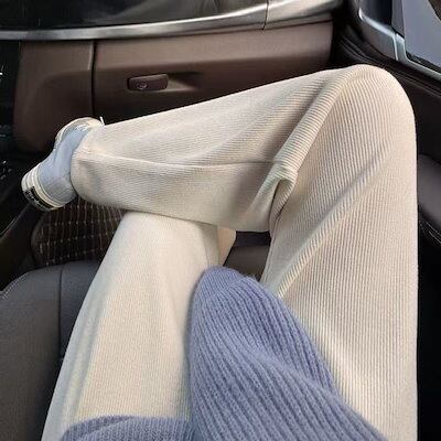 新作登場 ワイドパンツ リブ ニット ボトムス レディース パンツ 裏起毛 ウエストゴム ハイウエスト 着痩せ 体型カバー 秋冬用 暖かい カジュアル 人気