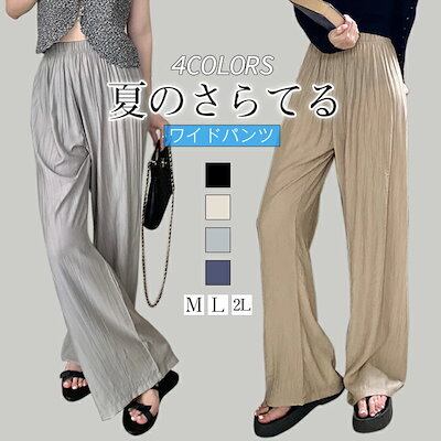 営?促? ワイドパンツ ロング丈 レディース 長ズボン ガウチョパンツ ハイウエスト おしゃれ 体型カバー ゆったり 無地 着回し易い 涼しい カジュアル 大人 シンプル カジュアル 通勤 大きいサイ | koookooo