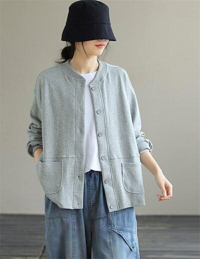 パーカー アウター レディース 秋 カーディガン 長袖 ジャケット 羽織り ライトアウター コート ポケット付き スプリングコート ボタン留め 羽織もの ノーカラー 大きいサイズ 体型カバー 春物 春 | koookooo
