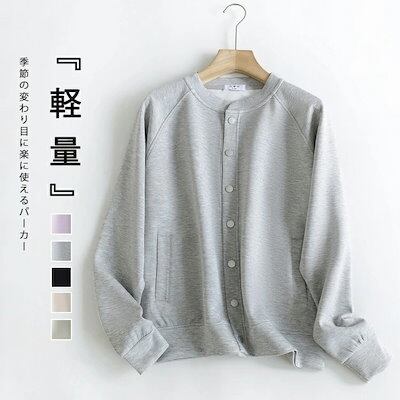 スウェット ジャケット ノーカラー レディース 秋冬 前開き パーカー ショート丈 ふんわり 柔らか コットン アウター 長袖 ポケット ドットボタン 羽織り ショート丈ジャケット カジュアル 無地 | koookooo
