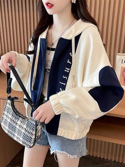 韓国 パーカー レディース 秋の色合わせ2024新型キャップ付きパーカーカーディガンゆったりミリタリートップス アウター ジップパーカー
