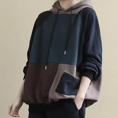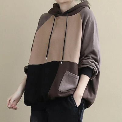 パーカー プルオーバー トップス レディース ブラウス 秋 長袖 パーカー風 切り替え アウター 羽織り フード付き プルオーバーパーカー スポーツウェア カジュアル シンプル おしゃれ 大きいサイズ | koookooo