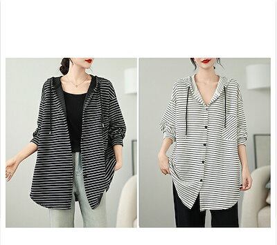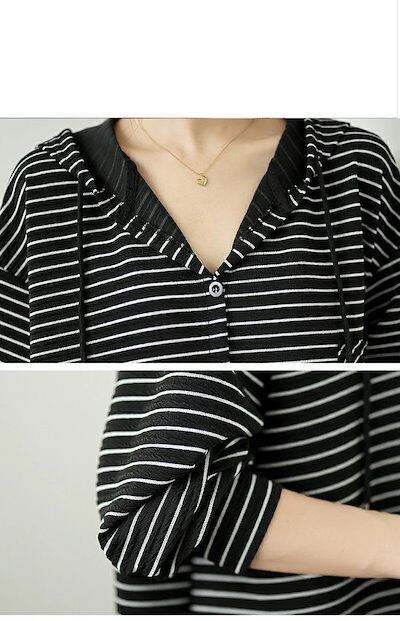 カーディガン レディース 大きいサイズ 秋冬 ボーダー パーカー 長袖 カーデ アウター トップス チュニック ロング丈 羽織り 大人可愛い カジュアル シンプル ゆったり 春秋 森ガール 20代 3 | koookooo