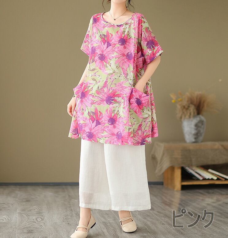 【春夏新作】ファッショントップス♪ピンク/グリーン2色展開◆