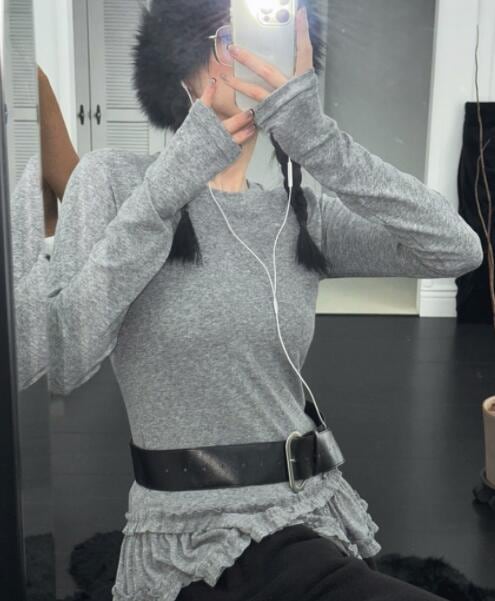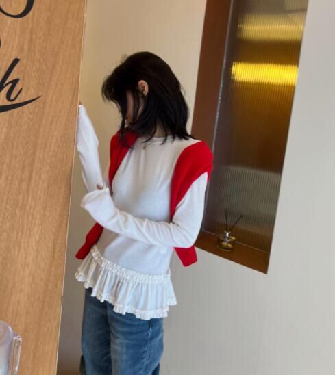 春物 トップス Tシャツ 長袖 フリル レイヤード