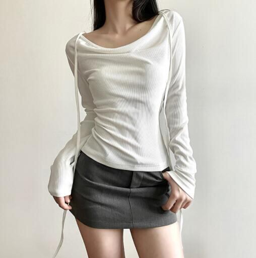 トップス ガールズ Tシャツ 長袖 スリム Vネック