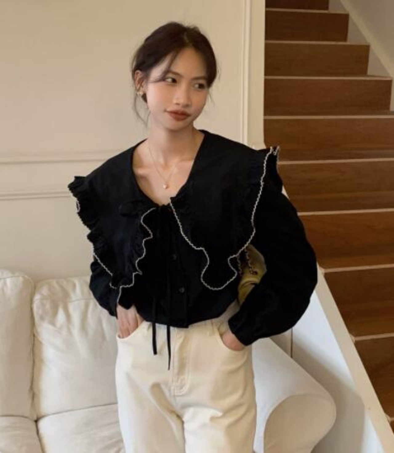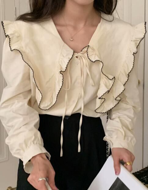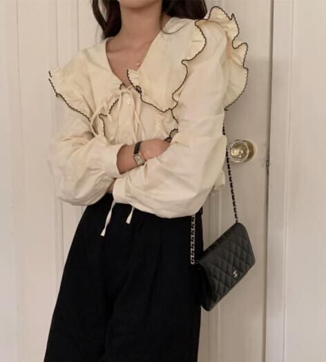 トップス シャツ 長袖 カジュアルシャツ ビッグカラー