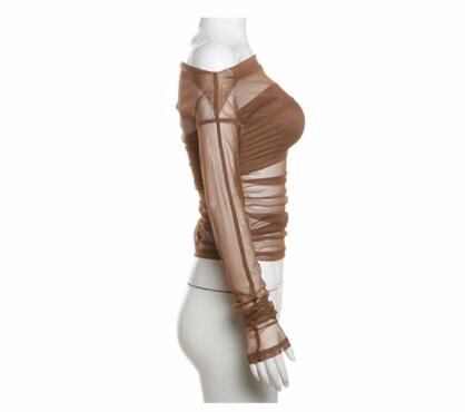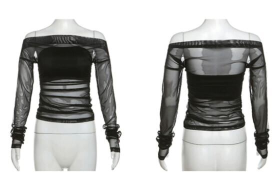 トップス Tシャツ 長袖 ベアトップ メッシュ シースルー スリム