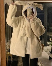 全2色 コート 長袖 ファー付き 切り替え 体型カバー 着痩せ 帽子付き シンプル