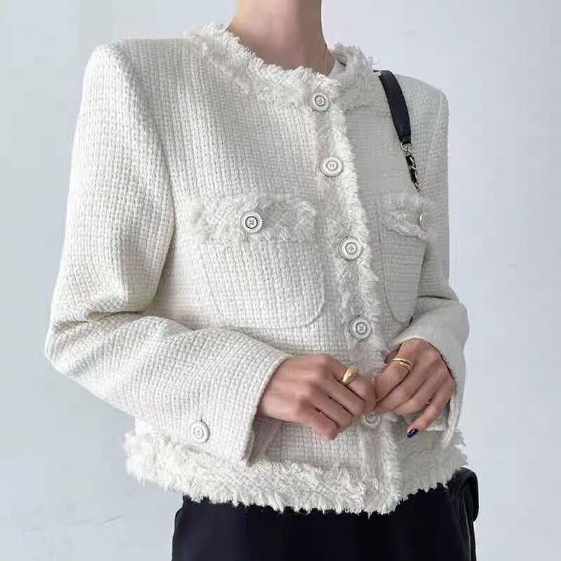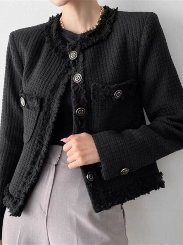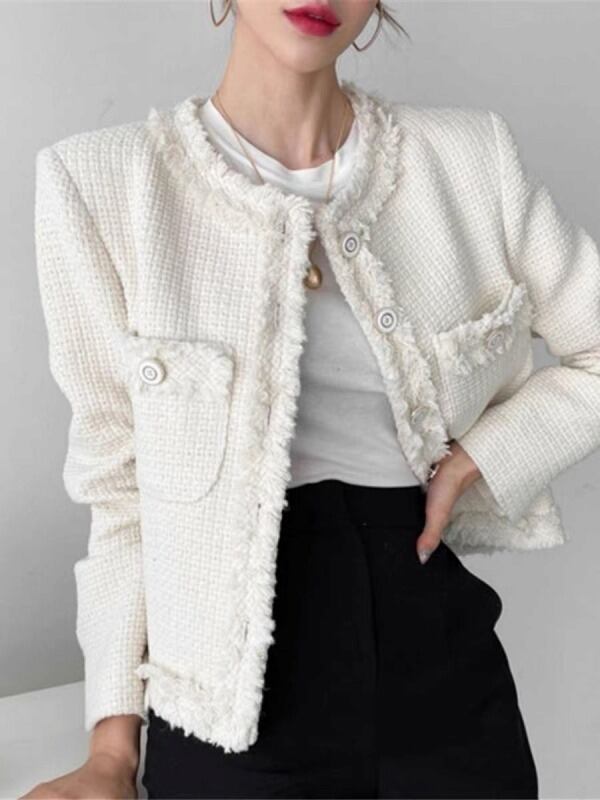 全2色 ブレザー フリンジ 長袖 切り替え 体型カバー 着痩せ シンプル