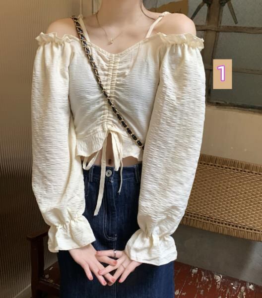 2022春秋新作 トップス 女 レディース 長袖 無地 シャツ ブラウス インナー 2色