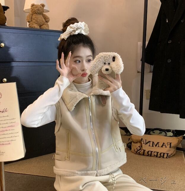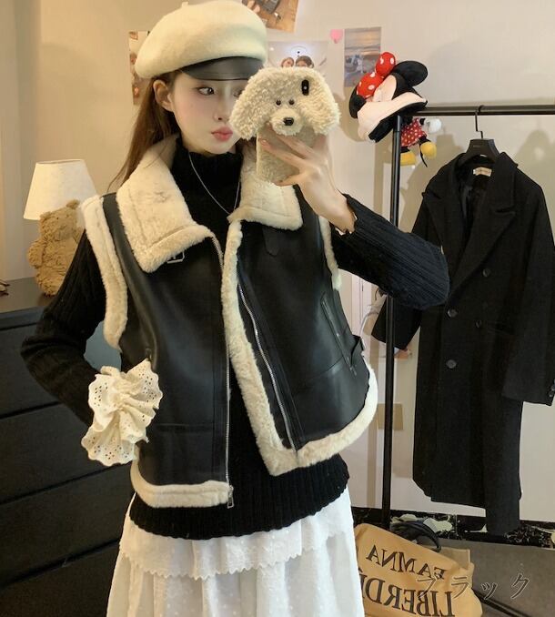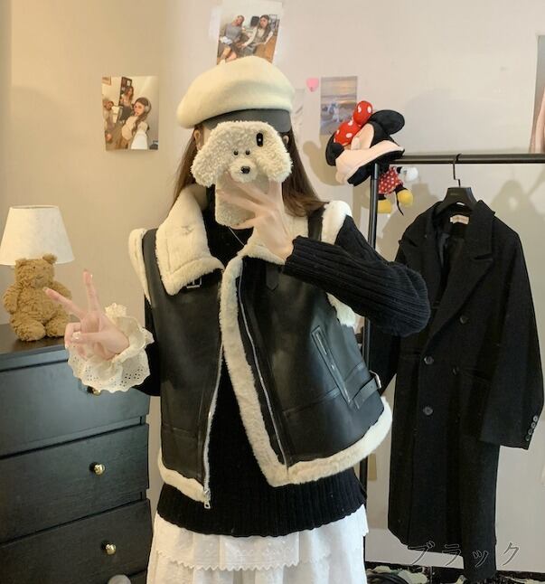 全3色 ダウンベスト ファー付き 切り替え 体型カバー 着痩せ シンプル