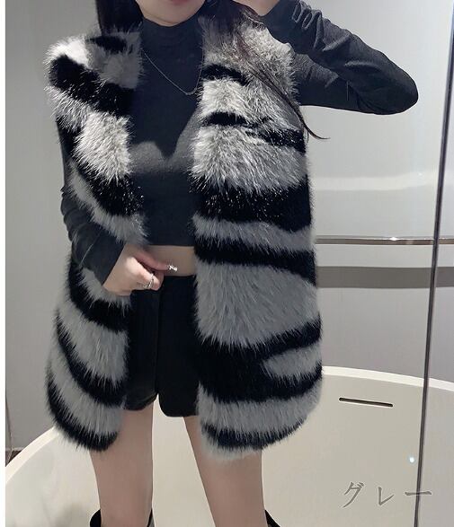 全2色 ダウンベスト ファー付き 切り替え バイカラー 体型カバー 着痩せ シンプル