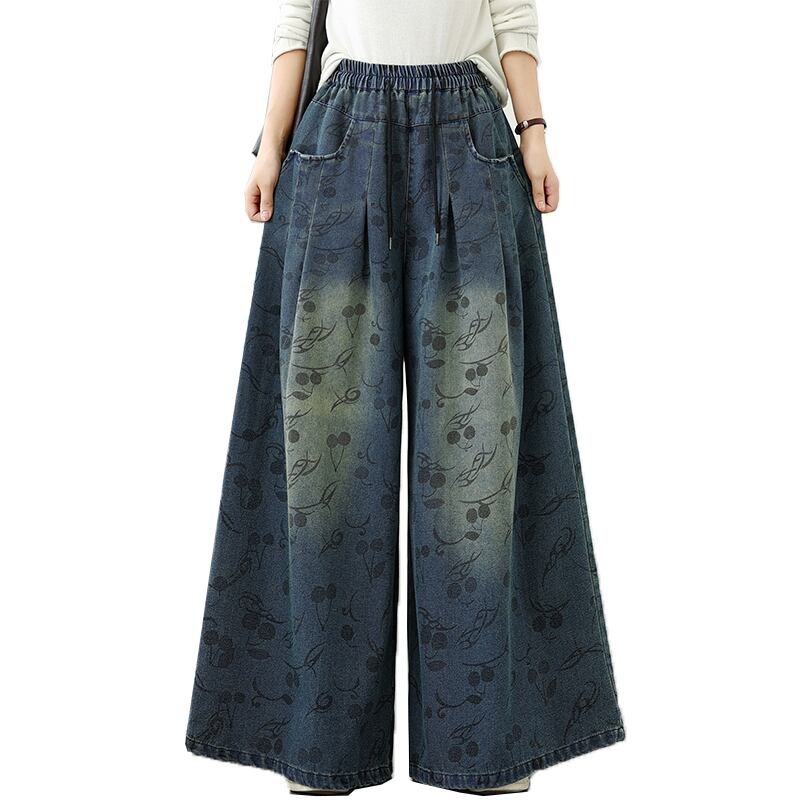 初回送料無料 プリントワイドパンツ デニムストレートパンツ レディースファッション人気トレンド