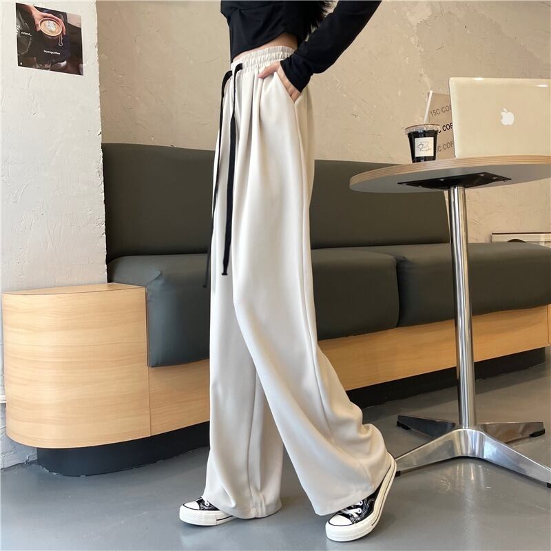 2022新作 レディース パンツ ズボン ゴムウエスト ストンと落ちる ストレート イージーパンツ 美脚 脚長