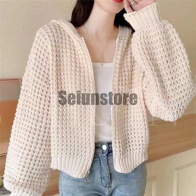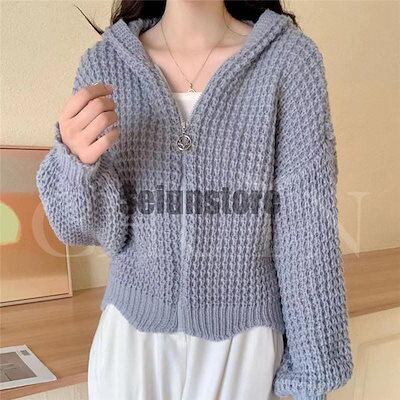 【人気商品超目玉】 パーカー ニットパーカー レディース 長袖 秋 秋服 カーディガン トップス 春秋冬 フード付き 羽織着痩せ無地 カジュアルおしゃれ韓国風