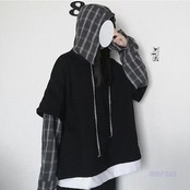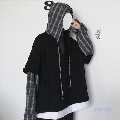 大人の魅力 パーカー レディース トップス 長袖 チェック柄 トレーナー フード付き 配色 重ね着風 スウェットパーカ シンプル 可愛い 春 秋