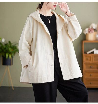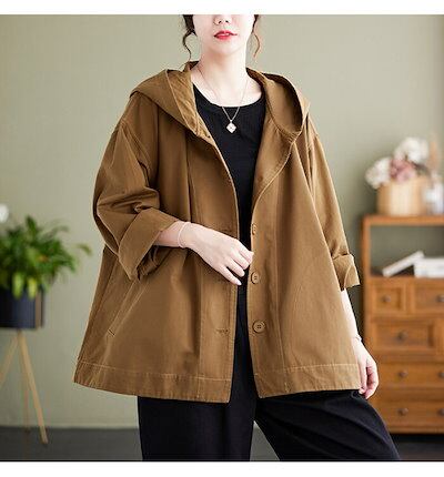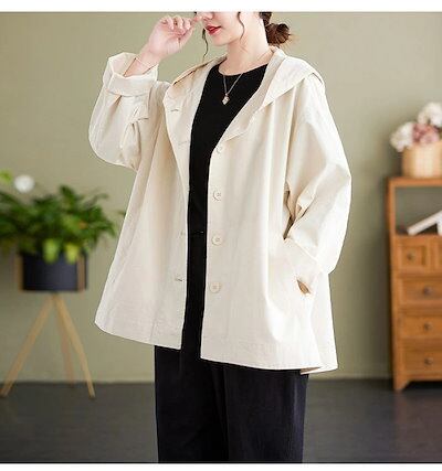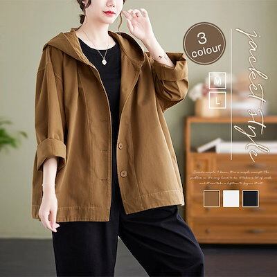 ジャケット レディース 秋 フード付き ロングジャケット 長袖 トレンチコート パーカー 前開き ブルゾン マウンテンパーカー カジュアル トップス ゆったり 体型カバー 通勤 通学 春 秋 きれいめ | koookooo