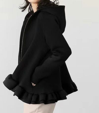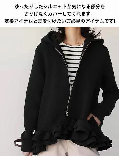 フリル パーカー フード付き レディース スウェット フリルパーカー アウター 長袖 前開き 長袖パーカー コート フリル裾 春 秋冬 トップス 無地 お洒落 ジップパーカー 可愛い こなれ感 カジュ | koookooo