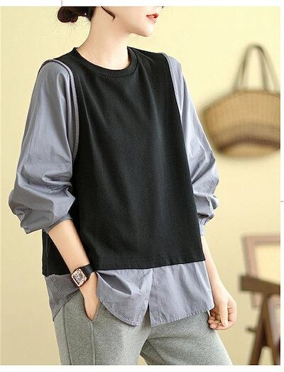 ブラウス レディース 長袖 シャツ チュニック 長袖 シャツブラウス 長袖シャツ 切替 パーカー 春 チュニックシャツ 無地 バルーン袖 トップス ブラウス ゆったり 体型カバー フレア プルオーバー | koookooo