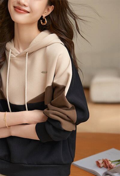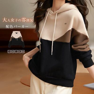 配色パーカー レディース ドッキング 無地 おしゃれ 春 長袖 トレーナー スウェット トップス プルオーバー レディースパーカー 長袖トップス レディーススウェット 春秋トップス 秋 春 tシャツ | koookooo