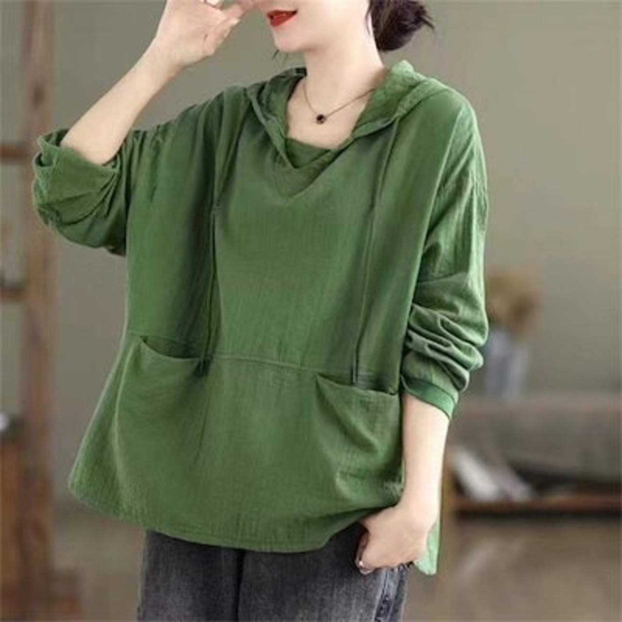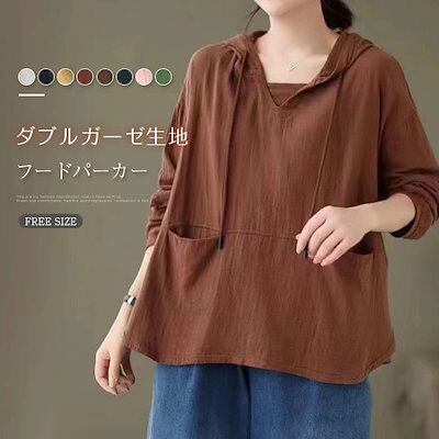 パーカー ガーゼ tシャツ レディース 長袖 フード付き 綿 Tシャツ トップス レディース シンプル 長袖tシャツ カジュアル 春秋 着回し 大人 長袖 レディース 定番 無地 秋 春 体型カバー | koookooo