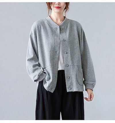 ジャケット スウェット レディース カーディガン 長袖 立ち襟 コート 綿混 前開き ポケット付き トップス パーカー 無地 体型カバー ゆったり 春コート オフィス オシャレ ショートジャケット ア | koookooo