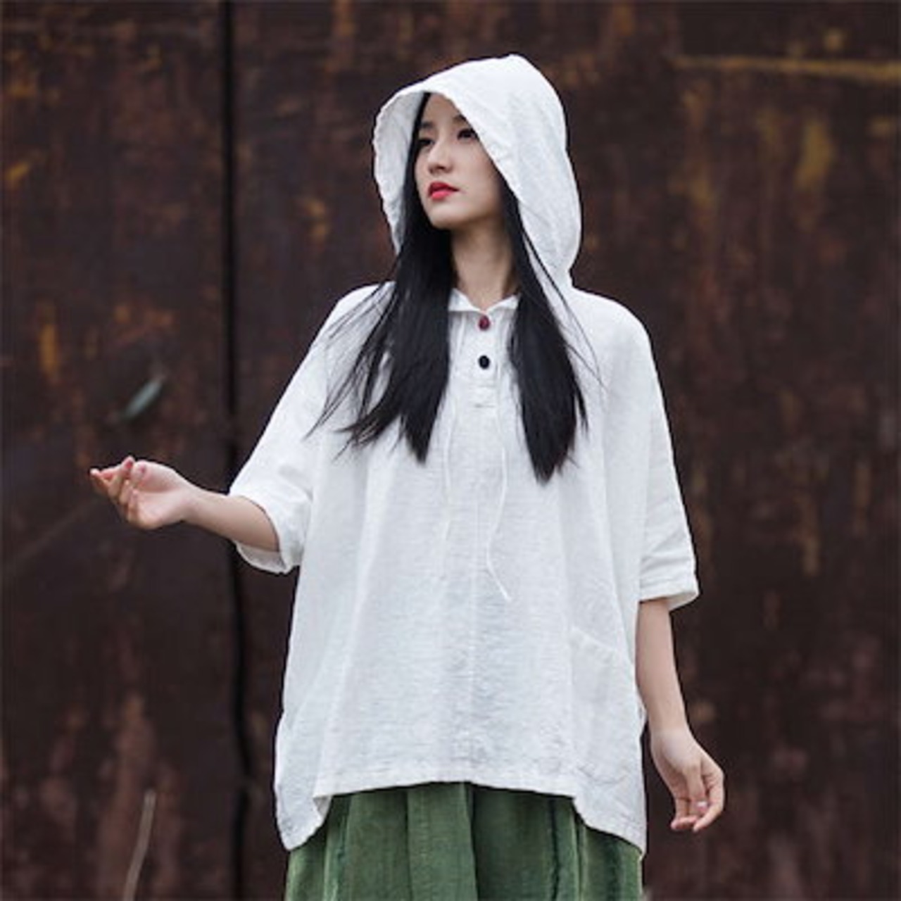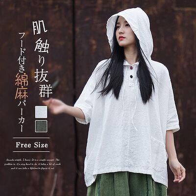 パーカー Tシャツ レディース サマーTシャツ 春夏 スウェット フードパーカー トップス 半袖パーカー 綿麻 コットンリネン プルオーバー 涼しい 無地 トレーナー 大きいサイズ ゆったり おしゃれ | koookooo